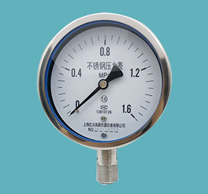不銹鋼壓力表使用與購買:1、全不銹鋼壓力表不適用于外界有氯、硝酸和過氯化氧等強(qiáng)化劑環(huán)境。2、不銹鋼壓力表外殼需噴涂PTEE聚四氟乙烯涂層時(shí),訂貨時(shí)注明。3、不銹鋼壓力表接頭螺紋如需特殊要求時(shí)請說明。4、全不銹鋼壓力表分普通型和耐震型。5、訂貨請說明名稱、型號及測量上限