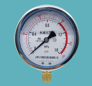 電接點壓力表的作用原理是測量系統(tǒng)的彈簧管在被測介質的壓力下,迫使彈簧管之末端產生相應的彈性變形一位移,借助拉桿經(jīng)齒輪傳動機構的傳動并予放大,由固定于齒輪軸上的指針(連同觸頭)將被測值在度盤上指出來。與此同時,當其與給定針上的觸頭(下限或上限)相接觸(或斷開)的瞬時,通過電路系統(tǒng)中的繼電器及接觸器的作用(將電源接通或切斷),使得控制機構作出相應的動作(工作與否),并可發(fā)出電信號,以達到白動控制和報警的目的。
